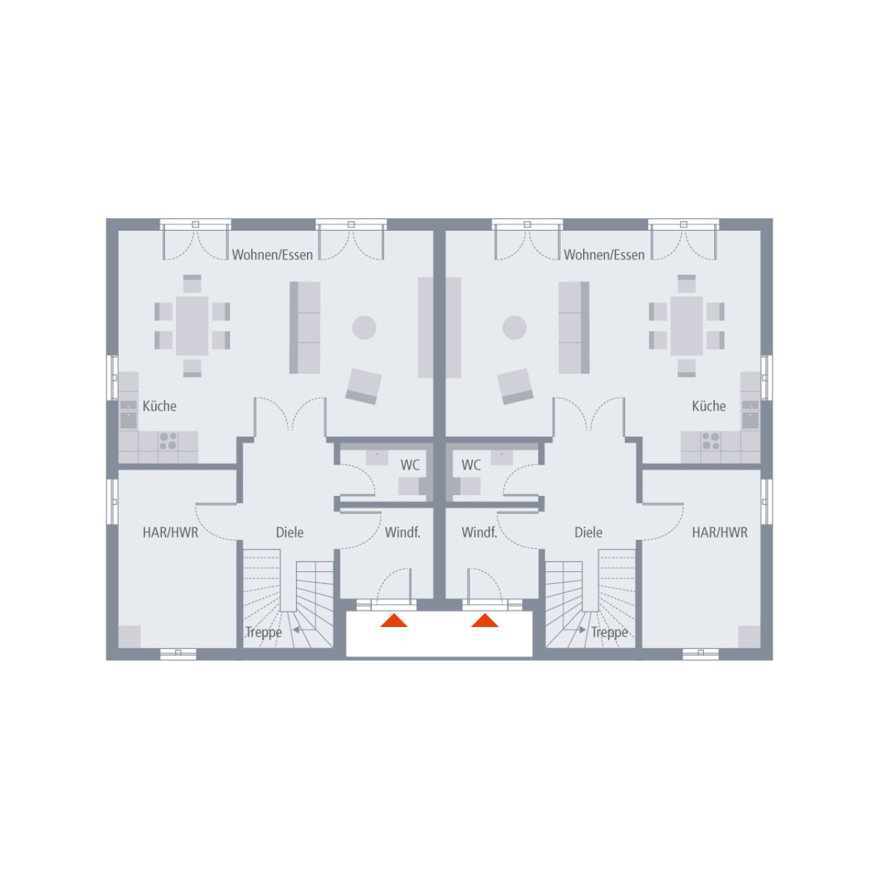 Das ZweiRaum-Konzept hat viele Vorteile: geteilte Kosten, geliebte Familienmitglieder oder gute Freunde Tür an Tür, zusätzliche Einnahmen bei Vermietung. Auch ZweiRaum 12 lässt alle Optionen offen. Die jeweils rund 140 m2 großen Haushälften bieten Raum für alle Ansprüche. Linke oder rechte Seite? Identische Grundrisse machen die Entscheidung leicht und in jedem Haus steckt 100 % OKAL. Schon beim Betreten spürt man perfektionierte Funktionalität. Der rückversetzte Eingang mit praktischem Windfang ermöglicht trockenen Zutritt und hält Schmutz aus dem Wohnbereich fern. Und auch die restliche Planung lässt keine Wünsche offen. Qualität, die man spürt.