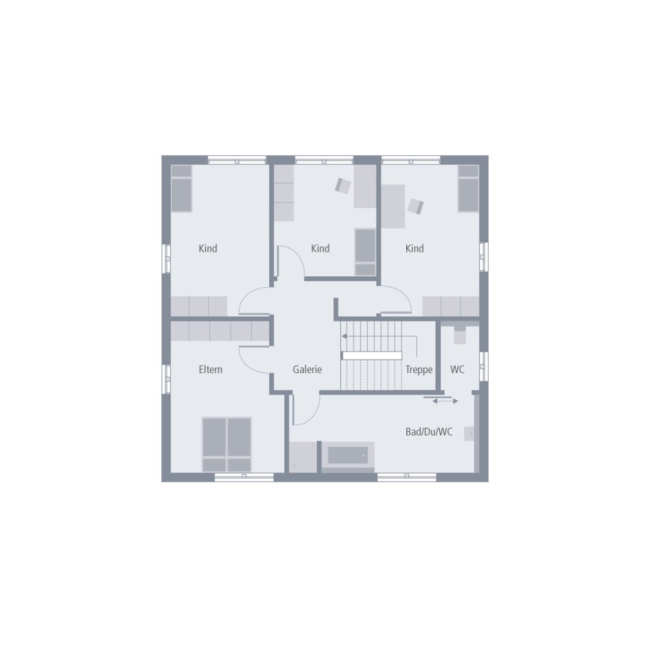 Als wahres Raumwunder entpuppt sich die Stadtvilla 21. Auf einer Wohnfläche von knapp 190 m2 finden hier Familien mit bis zu drei Kindern Platz – und haben sogar noch Gelegenheit, Schlafgästen einen eigenen Raum zur Verfügung zu stellen oder sich alternativ ein Büro oder einen Hobbyraum einzurichten. Durch die freundliche und helle Diele führt der Weg direkt in den Wohn-Ess-Kochbereich, der das perfekte Zentrum des Familienlebens ist. Komplettiert wird das Angebot im Erdgeschoss durch ein Gästezimmer, WC, Hauswirtschaftsraum sowie eine Abstellkammer. Die obere Etage ist so konzipiert, dass dort verschiedene Nutzungsmöglichkeiten denkbar sind: Neben dem Elternschlafzimmer und einem 15 m2 großen Bad mit separatem Toilettenbereich befinden sich dort drei weitere Zimmer. Hier finden drei Kinder Platz, es besteht aber auch die Option, dass einer der drei Räume als Spielzimmer fungiert.