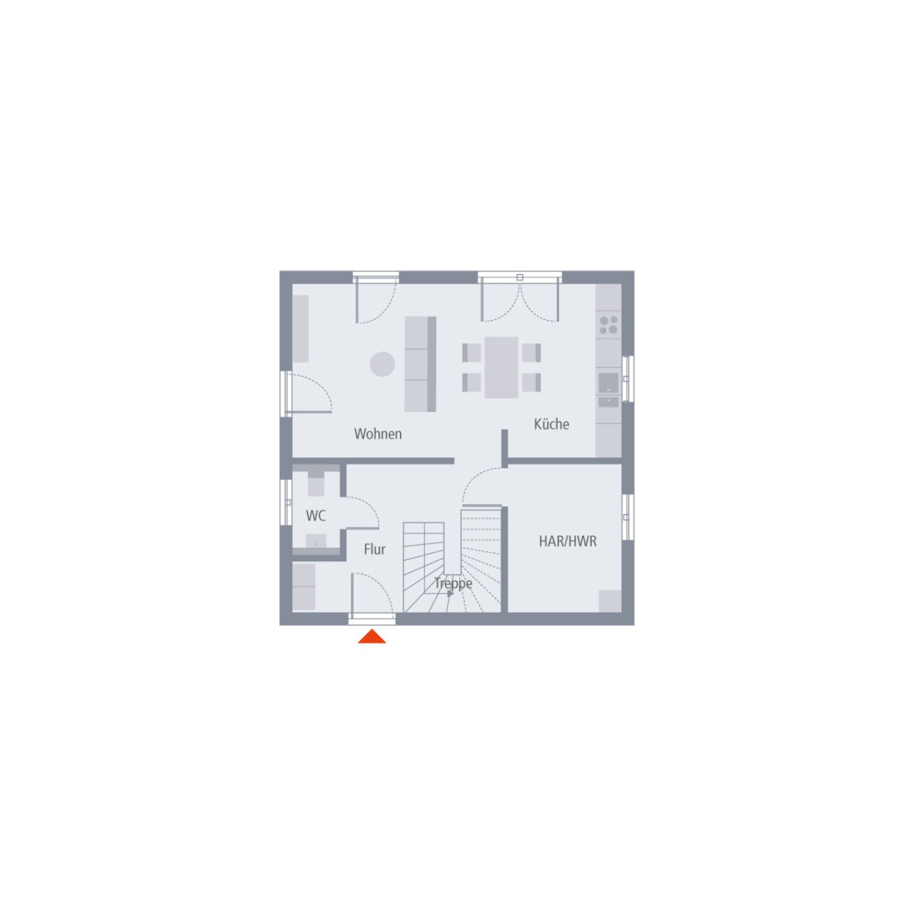 Schlichte Eleganz gepaart mit einem durchdachten Raumkonzept – das zeichnet das Einfamilienhaus Design 9.2 aus. Die geradlinige Architektur wird noch unterstrichen durch die zweifarbige Fassadengestaltung, die dem Haus eine besondere Note verleiht und sie optisch noch einmal zusätzlich aufwertet. Geradlinig geht es auch im Inneren weiter. Herzstück im Erdgeschoss ist der große und lichtdurchflutete Wohn-Ess-Koch-Bereich mit direktem Zugang zum Garten. Dieser ist räumlich getrennt von Hauswirtschaftsraum und Gäste-WC. Von der geräumigen Diele, in der ausreichend Platz für eine Garderobe ist, führt eine Treppe ins Obergeschoss. Hier wird der Wohnraum perfekt ausgenutzt. Zwei Kinderzimmer, ein Schlafzimmer für die Eltern sowie ein geräumiges Bad mit Wanne, Dusche und WC bieten hier einen idealen Rückzugsort. Auf einer Wohnfläche von rund 107 m2 ist hier ein gemütlicher und komfortabler Wohlfühlort für die ganze Familie entstanden.