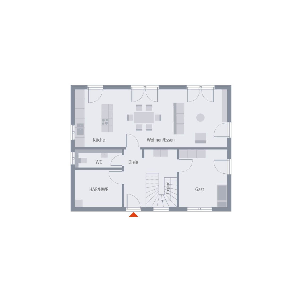 Ein echter Blickfang des Design 12 ist die Fassade, die durch ihre farbige Gestaltung zum echten Hingucker wird. Doch auch die Räume unter dem Satteldach haben auf mehr als 160 m2 Wohnfläche vieles zu bieten: Von der Diele haben Sie Zugang in die Küche mit angeschlossenem Wohn-Ess-Bereich. Im Erdgeschoss führen fünf Türen nach draußen und sorgen zugleich für viel Licht. Ebenfalls auf dieser Etage: WC, Hauswirtschaftsraum sowie ein weiterer Raum, der als Gästezimmer oder Büro genutzt werden kann. Von der Diele führt auch eine Treppe ins Dachgeschoss. Hier steht den Eltern ein großes Reich mit direkt angeschlossenem Ankleidezimmer zur Verfügung, und auch für zwei Kinder ist viel Platz zum Toben, Schlafen, Spielen oder Lernen. Ein echtes Highlight: das knapp 16 m2 große Badezimmer.
