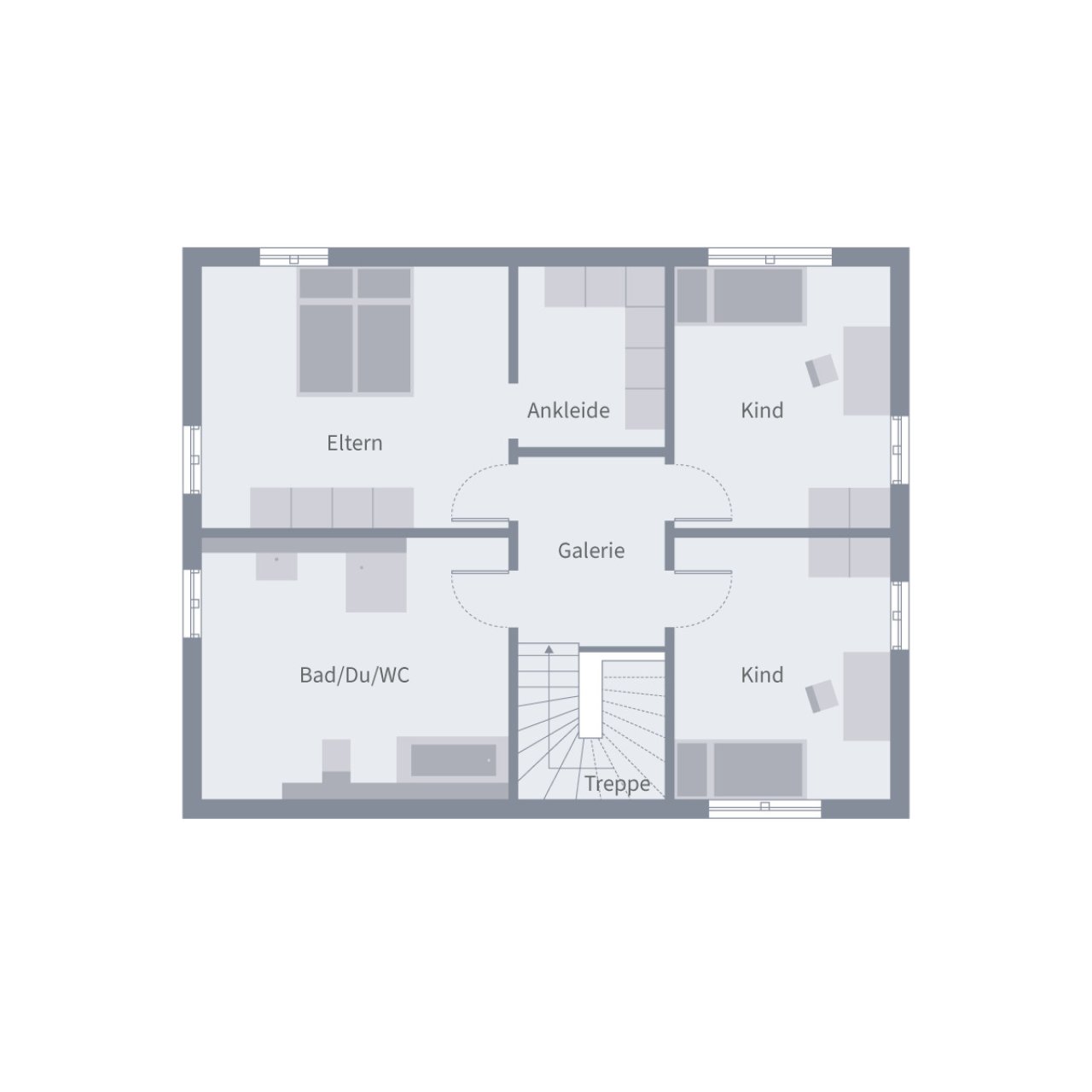 Mit 164 m² bietet die Stadtvilla 12.2 viel Platz für das Leben in all seinen Facetten. Der Eingangsbereich empfängt offen und freundlich, eine Garderobennische sorgt für Ordnung. Im Herzen des Hauses liegt der große Wohn- und Essbereich – hell, einladend und mit Raum für gemeinsames Kochen, Spielen und Ankommen. Das Gästezimmer kann ebenso gut als Büro genutzt werden, Hauswirtschaftsraum und Gäste-WC ergänzen den Alltag praktisch. Im Obergeschoss wartet die Rückzugsoase der Eltern mit eigener Ankleide, zwei helle Kinderzimmer und ein großzügiges Familienbad, das Entspannung zum Teil des Tages macht. Ein Haus, das Freiraum schafft – für jedes Familienmitglied.