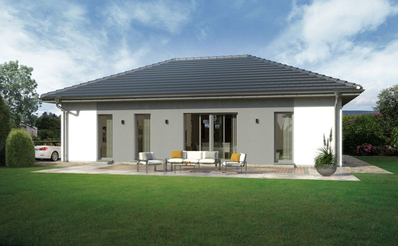 Auf 107 m² bietet dieser Bungalow alles, was eine Familie zum Wohlfühlen braucht. Im offenen Wohn- und Essbereich spielt sich das Leben ab – hell, freundlich und mit drei Glastüren, die den Garten zum Teil des Zuhauses machen. Die angrenzende Küche ist offen und praktisch, hier darf gemeinsam gekocht und gelacht werden. Der Hauswirtschaftsraum mit Zugang von außen erleichtert den Alltag und hält Schmutz draußen. Ein Elternbereich mit Ankleide, ein sonniges Kinderzimmer, ein Bad mit Wanne und Dusche sowie ein Gäste-WC machen das Familienglück komplett.
