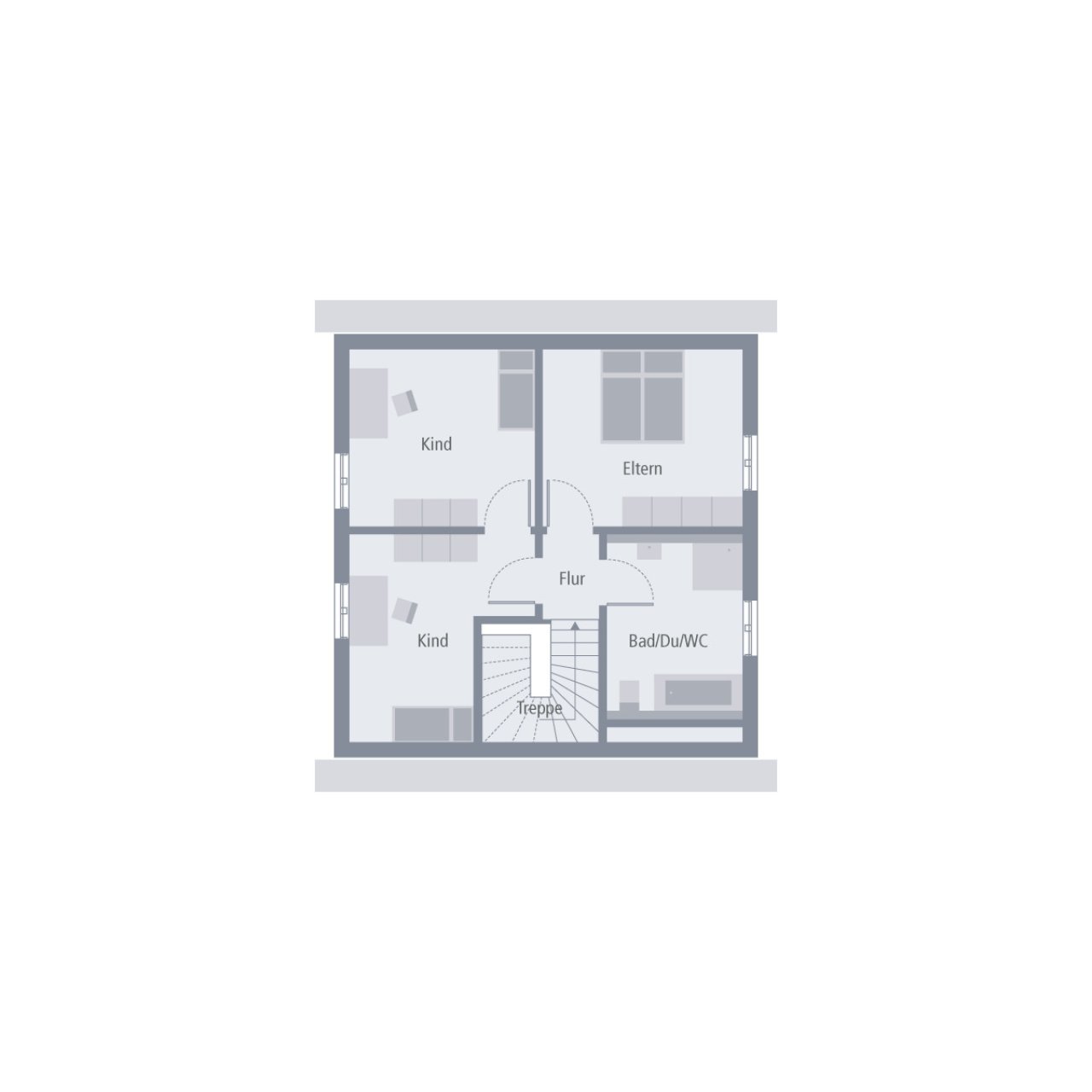 Schlichte Eleganz gepaart mit einem durchdachten Raumkonzept – das zeichnet das Einfamilienhaus Design 9.2 aus. Die geradlinige Architektur wird noch unterstrichen durch die zweifarbige Fassadengestaltung, die dem Haus eine besondere Note verleiht und sie optisch noch einmal zusätzlich aufwertet. Geradlinig geht es auch im Inneren weiter. Herzstück im Erdgeschoss ist der große und lichtdurchflutete Wohn-Ess-Koch-Bereich mit direktem Zugang zum Garten. Dieser ist räumlich getrennt von Hauswirtschaftsraum und Gäste-WC. Von der geräumigen Diele, in der ausreichend Platz für eine Garderobe ist, führt eine Treppe ins Obergeschoss. Hier wird der Wohnraum perfekt ausgenutzt. Zwei Kinderzimmer, ein Schlafzimmer für die Eltern sowie ein geräumiges Bad mit Wanne, Dusche und WC bieten hier einen idealen Rückzugsort. Auf einer Wohnfläche von rund 107 m2 ist hier ein gemütlicher und komfortabler Wohlfühlort für die ganze Familie entstanden.