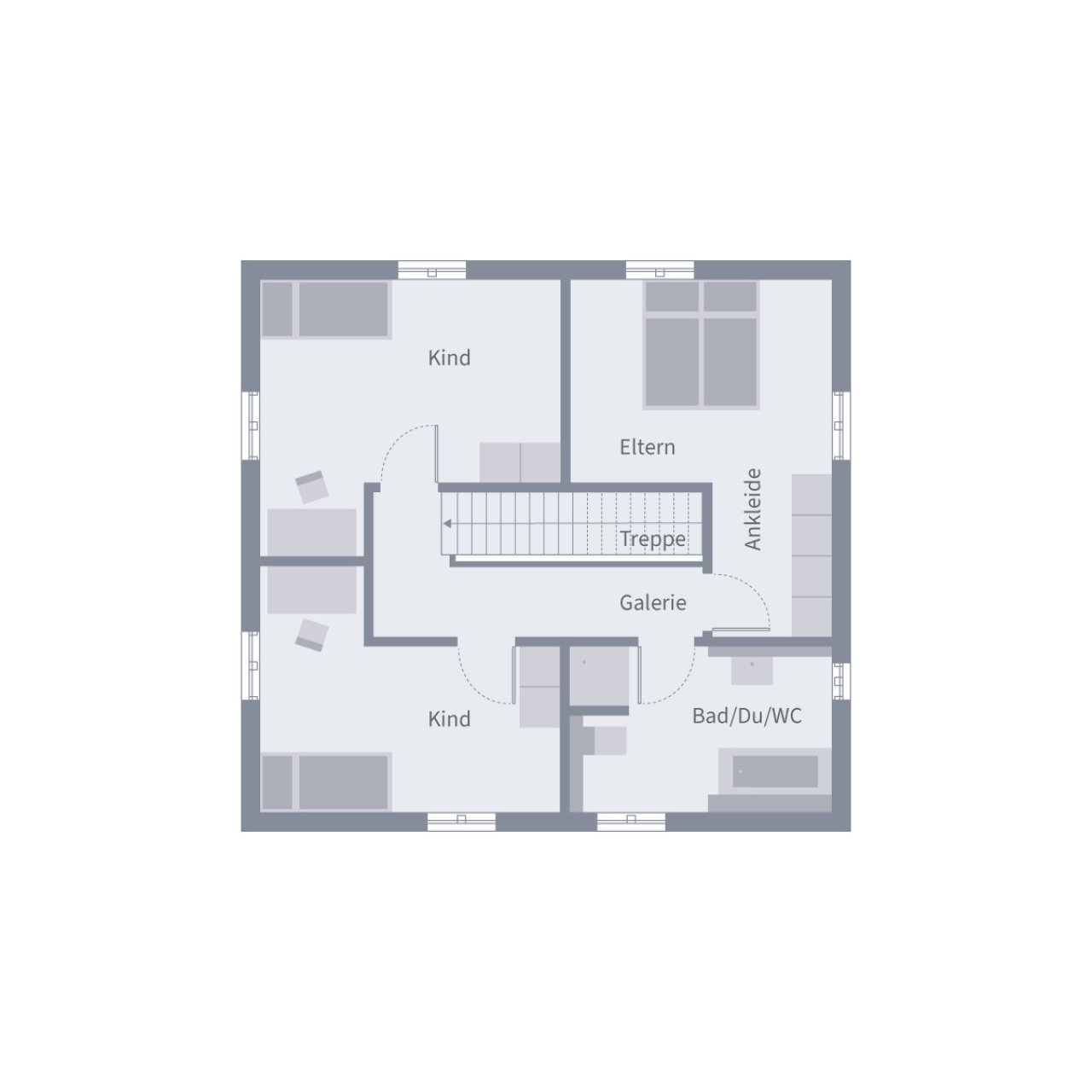 Die Stadtvilla 10.2 mit 135 m² verbindet modernes Wohnen mit einem Gefühl von Zuhause. Im Erdgeschoss öffnet sich der großzügige Wohnbereich – hell, offen und lebendig. Die Treppe steht dabei im Mittelpunkt: Raumtrenner und Gestaltungselement zugleich, das dem Zuhause Charakter verleiht. Hier wird gekocht, gelacht und gelebt. Praktisch ergänzt durch ein Gäste-WC und den Hauswirtschaftsraum, der den Alltag leichter macht. Im Obergeschoss warten Rückzugsorte für die ganze Familie – ein Elternzimmer mit Ankleide, zwei Kinderzimmer voller Ideen und ein Familienbad, das morgens wie abends zum Wohlfühlort wird.